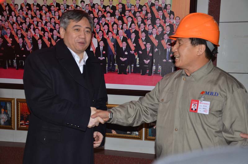 劉忻市長(zhǎng)與副董事長(zhǎng)、黨委書記宋道會(huì)親切握手劉忻市長(zhǎng)親切稱呼黨的十八大代表、全國(guó)勞動(dòng)模范關(guān)霄梅為女中豪杰